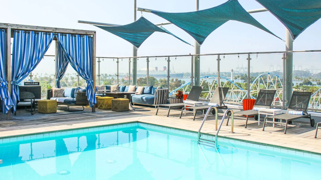 This hotel is located steps from Shoreline Village, the Long Beach waterfront, The Pike Outlets, and the Aquarium of the Pacific. It also walking distance to Long Beach’s entertainment, dining, and shopping scene. There’s a a rooftop pool with ocean and city views. The property was suggested by Grace who adds that there’s no lounge but the breakfast is OK.