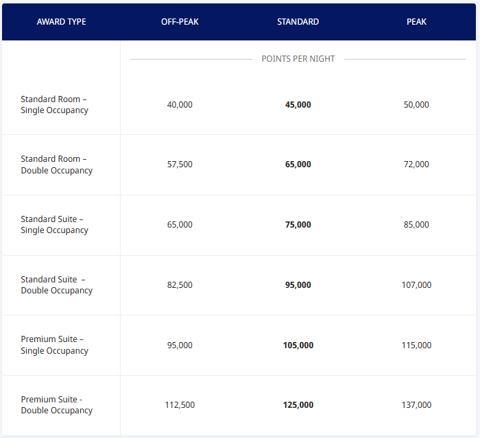 Currently, World of Hyatt has three different redemption levels for each Category, Off-Peak, Standard and Peak.  Here’s the current pricing for each category: