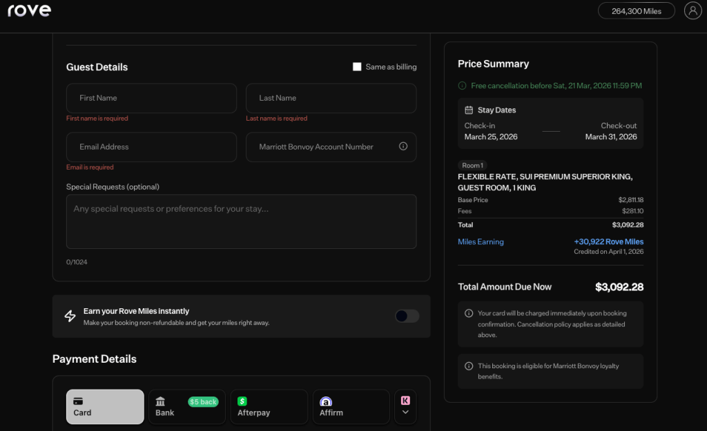 To celebrate the launch, Rove is offering double Rove Miles on all Loyalty Eligible hotel bookings through October 31, 2025. That means a total of 10x Rove Miles per $1 spent—in addition to any hotel points and credit card rewards earned.